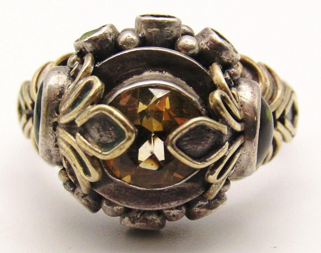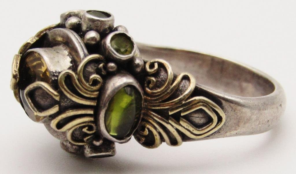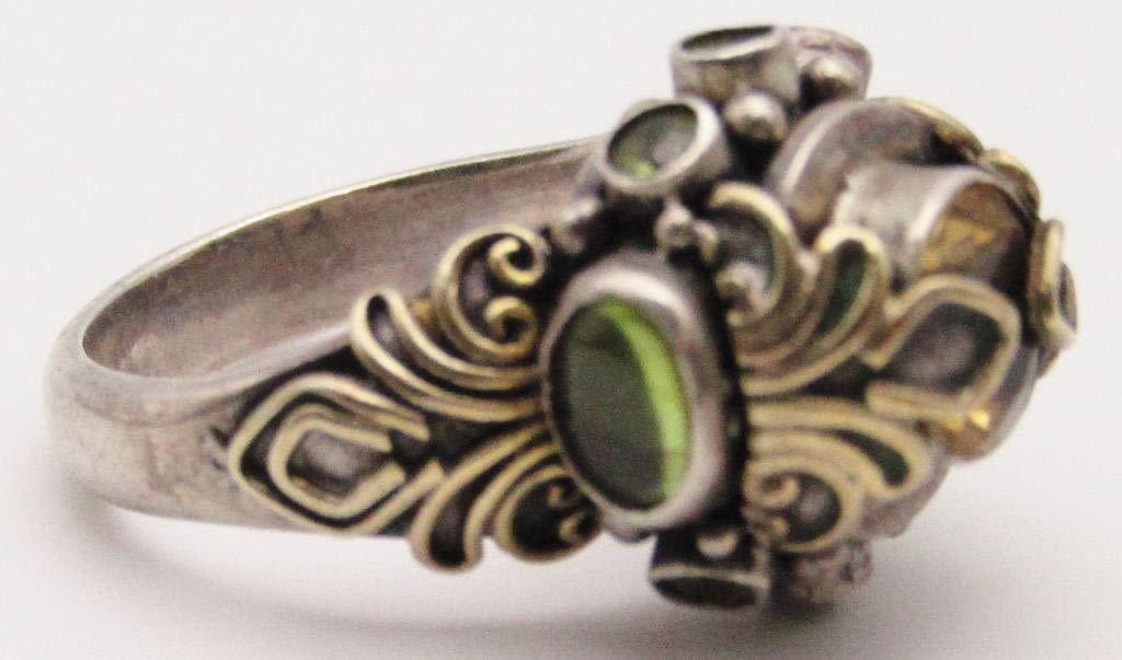 AND GREEN STONES & GOLD TONED ACCENTS-RING SIZE 10-TOTAL 8.1 DWT