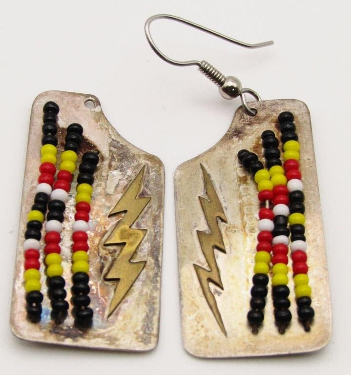 EARRINGS WITH LIGHTINGBOLT AND BEADS-TOTAL 4.7 DWT