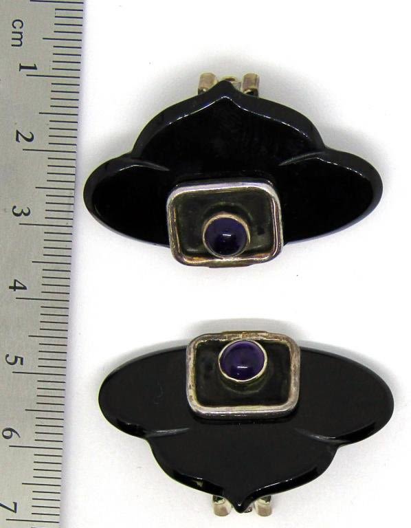 BLACK LUCITE & VIOLET CENTER STONE-TOTAL 15.3 DWT