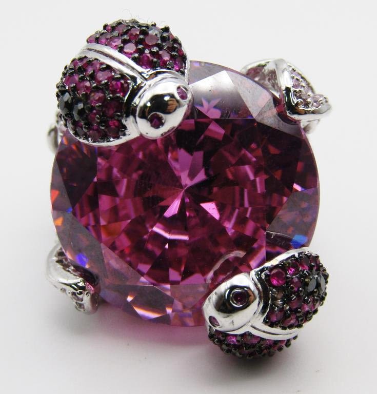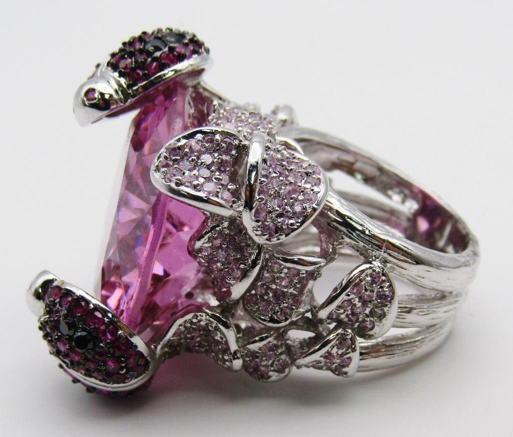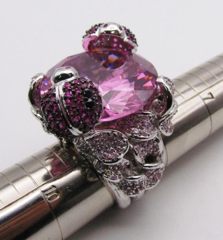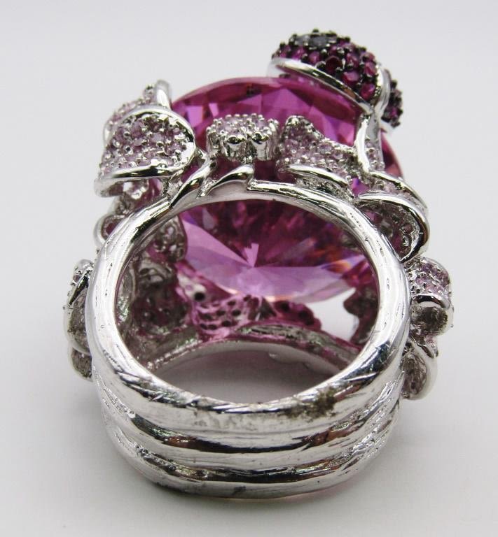 WITH LARGE PINK CENTER STONE-HEAVY!! RING SIZE 9-TOTAL 26.3 DWT