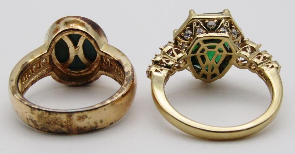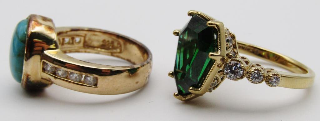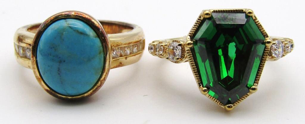 (1)WITH EMRALD GREEN CENTER STONE WITH CZ STONES (1)WITH TURQUOISE CENTER STONE-BOTH RINGS SIZE 8-TOTAL 8.6 DWT