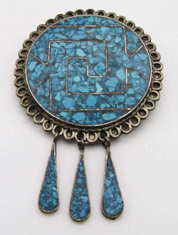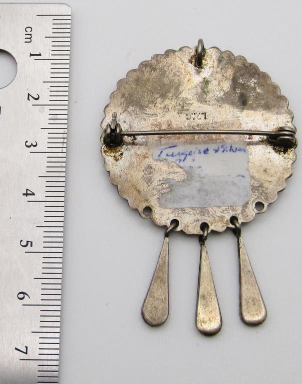 WITH CHIPPED TURQUOISE INLAY DESIGN (3)DANGLY CHARMS-TOTAL 7.1 DWT