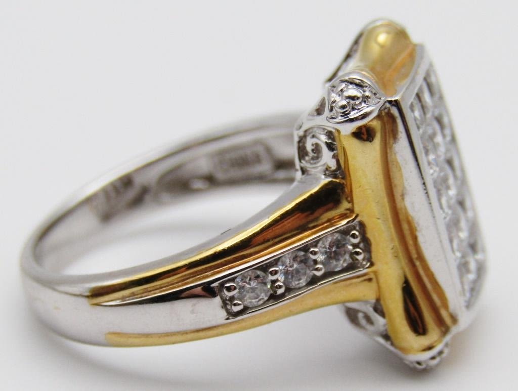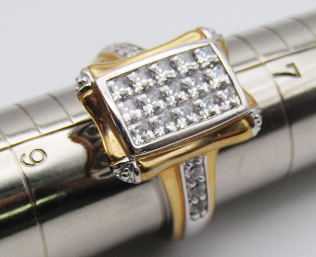 WITH CZ AND GOLD TONED ACCENTS-RING SIZE 8-TOTAL 8 DWT