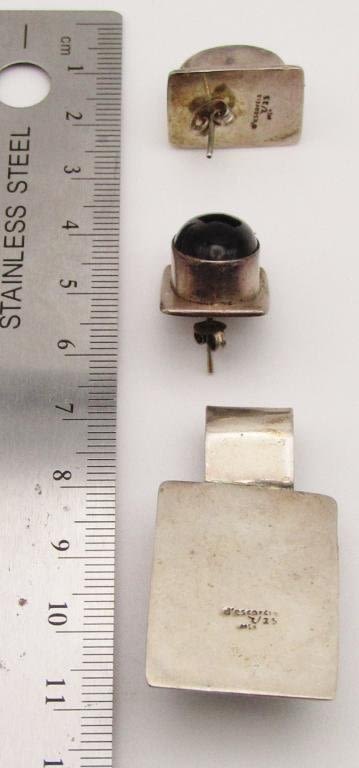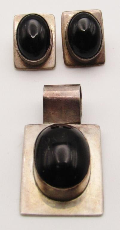 WITH MATCHING PAIR OF PIERCED EARRINGS-BLACK ONYX STONES-TOTAL 19.2 DWT