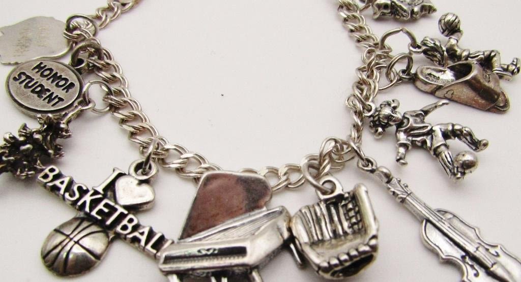 CHARMS-VIOLIN-BASKETBALL-SOCCER-BASEBALL GLOVE-HONOR STUDENT-TOTAL 19.3 DWT