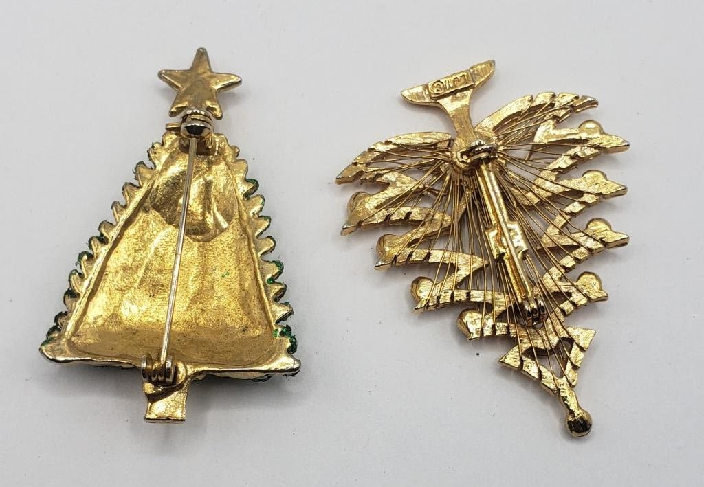 TWO RHINESTONE CHRISTMAS TREES GREEN, GREEN AND RED