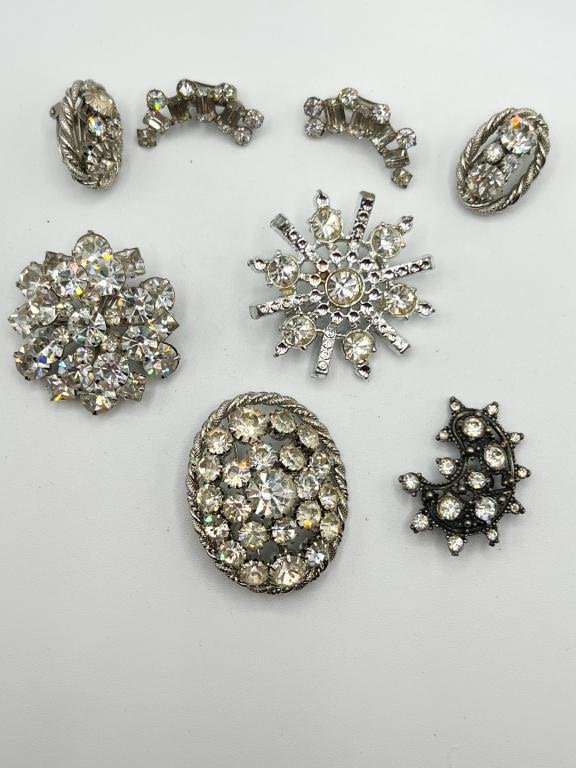 ABSO AMAZING RHINESTONES BROOCHES AND EARRINGS, SHINE BRIGHT , BEAUTIFUL GLITTERY COLORS
