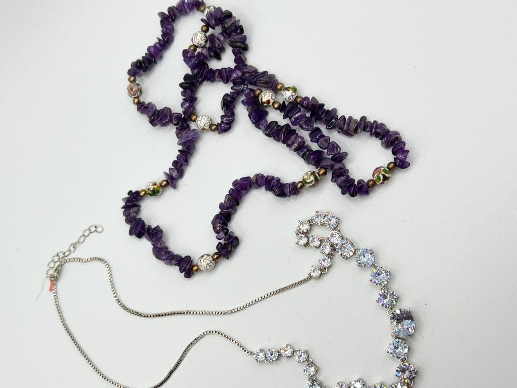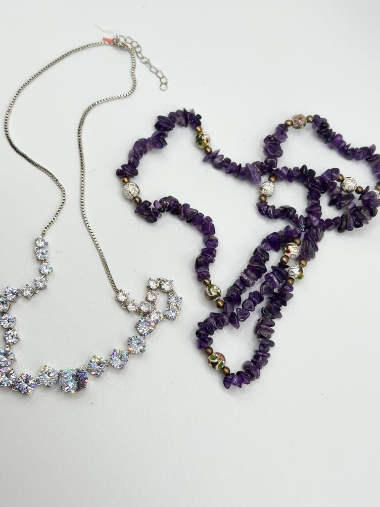 BIG ROCK RHINESTONE NECKLACE AND PRETTY PURPLE NECKLACE, GO WELL TOGETHER