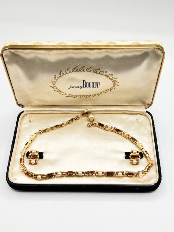 JEWELS BY BOGOFF NECKLACE AND EARRINGS SET AND CASE