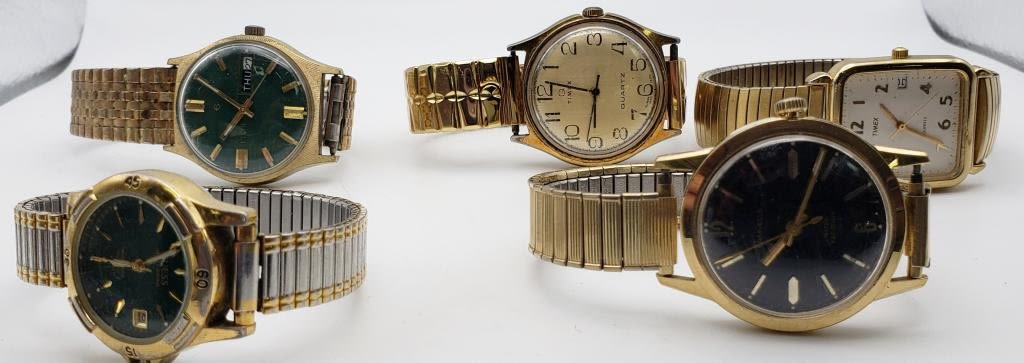 5-VINTAGE MEN’S GOLD TONED WRISTWATCHES