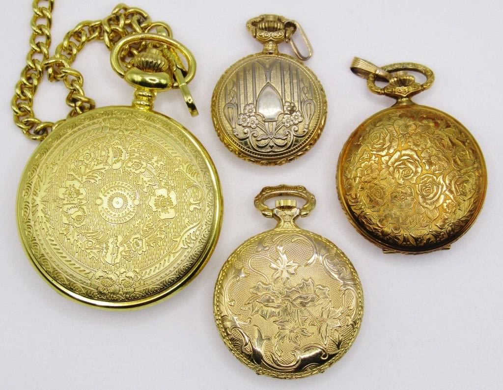 (4) GOLD TONED HUNTING CASE POCKET WATCHES