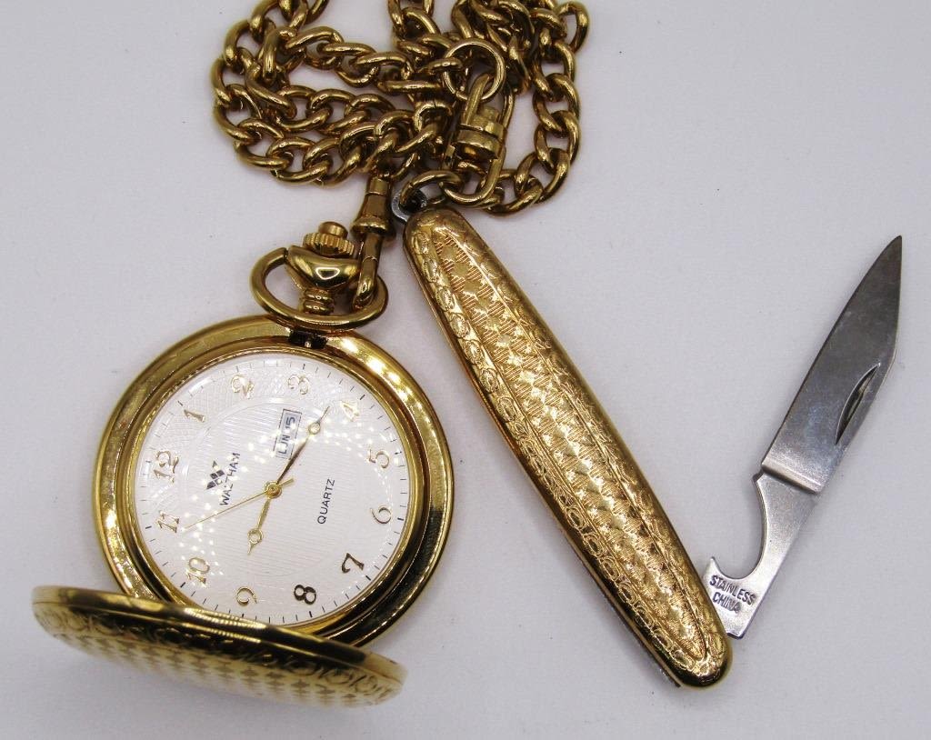 WALTHAM QUARTZ DAY/DATE POCKET WATCH