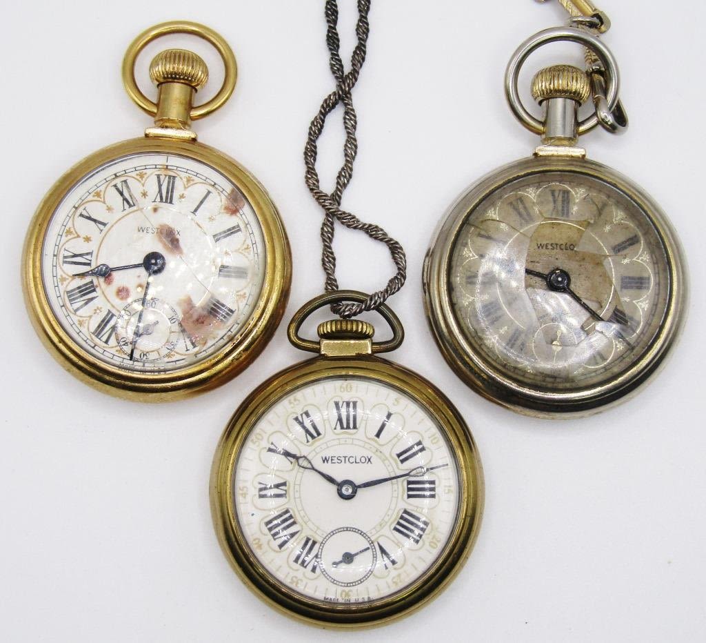 (3) WESTCLOX FANCY FACE POCKET WATCHES