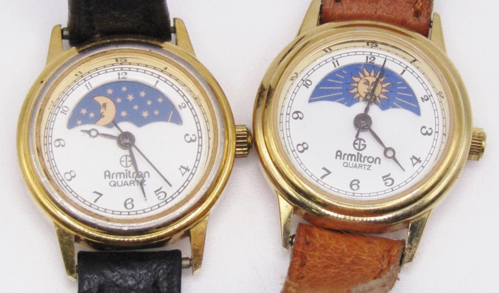 2-VINTAGE ARMITRON MOON PHASE WRISTWATCHES