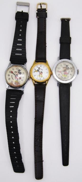 3-VINTAGE DISNEY MICKEY MOUSE WRISTWATCHES