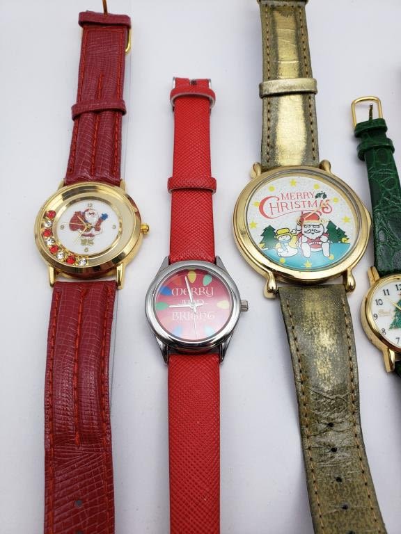 6-VINTAGE UNISEX CHRISTMAS WRISTWATCHES