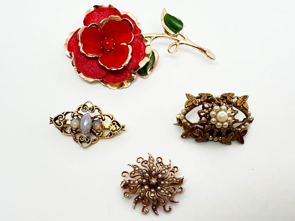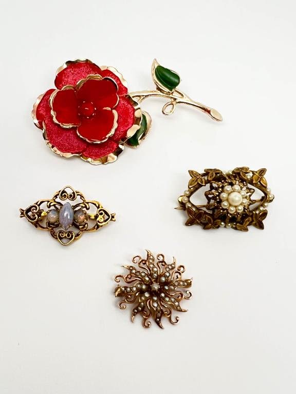 ROSE BROOCH AND FILIGREE STYLE, ONE LOT, ONE MONEY