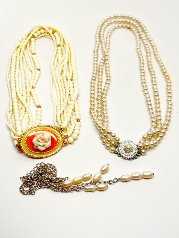 VINTAGE STYLE NECKLACES TRIO , SOFT AND ELEGANT !