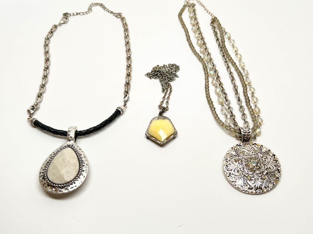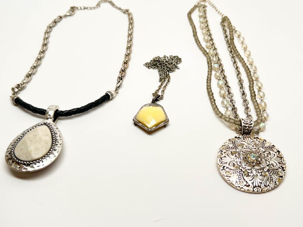 MODERN STYLISH TRIO, STONES AND FILIGREE , CREAM AND YELLOW, SILVER TONES