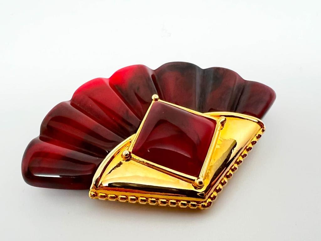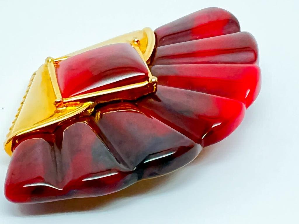AMAZING GINNIE JOHANSEN, RARE ? LUXURIOUS LOOK, RED WITH INTERSPIRSED BLACK TONES, LOOKS LIKE NEW, FEELS LIKE GLASS, ELITE !