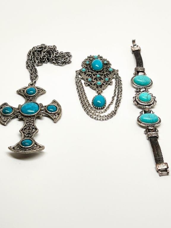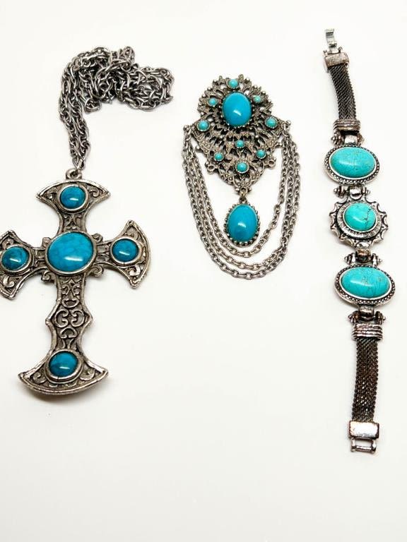HUGE SOUTHWEST STYLE ITEMS, LARGE CROSS , APP. 4" BROOCH AND BRACELET, GET THE LOOK !