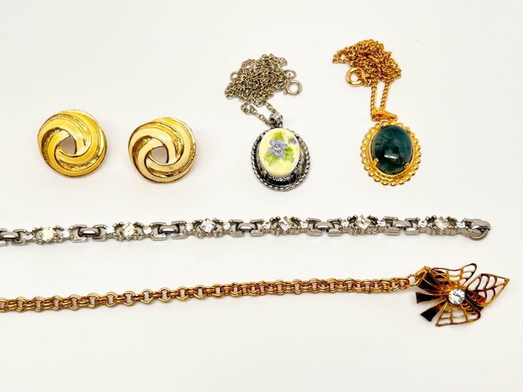 CLIPS, BRACELET, ENAMEL, EARRINGS , CAMEO, PENDANTS, EVERYTHING INCLUDED IN PHOTOS