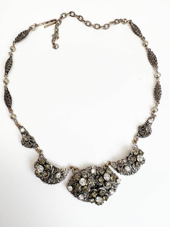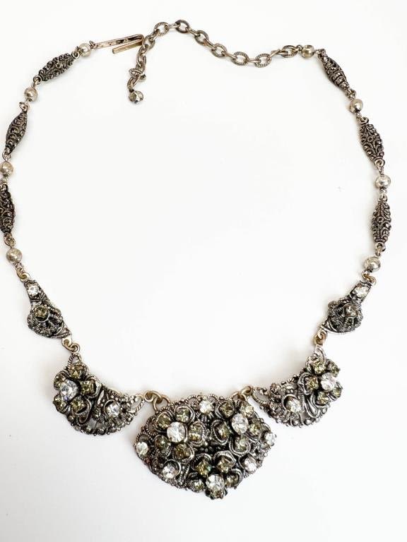 W GERMANY ORNATE NECKLACE , BEAUTIFUL STONES, FILIGREE, QUALITY MADE