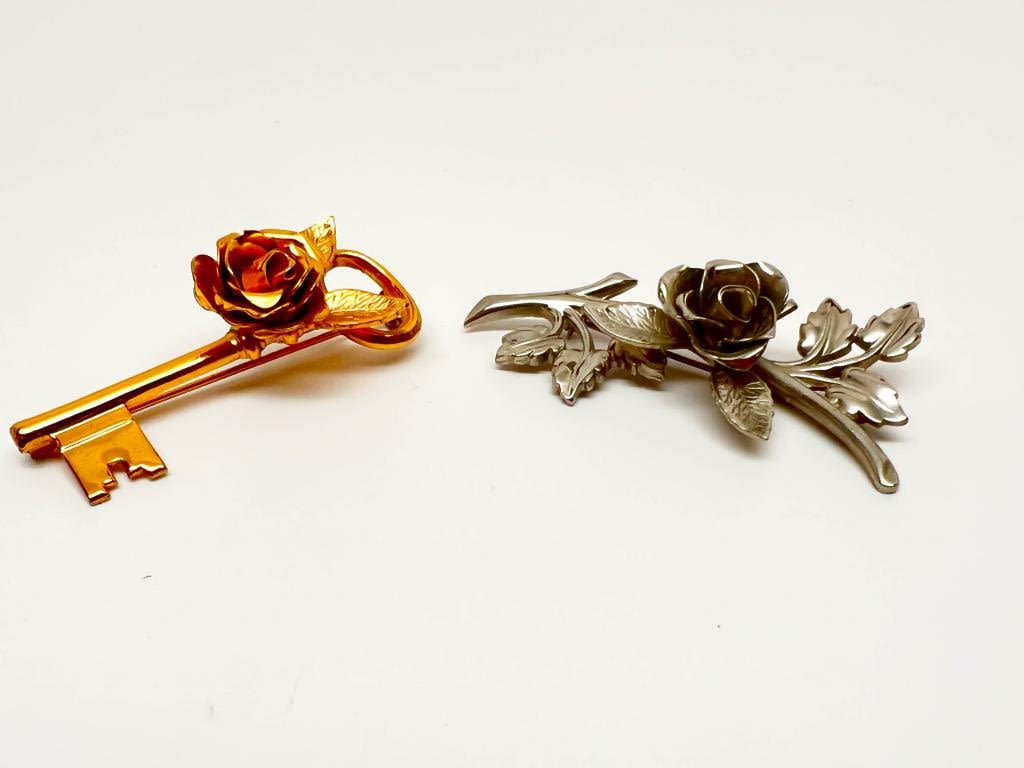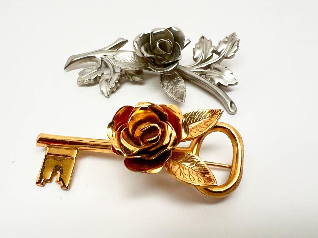 2 CORO FLORAL ROSES IN GOLD TONE AND SILVER TONE