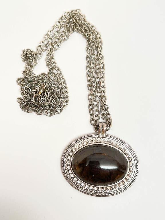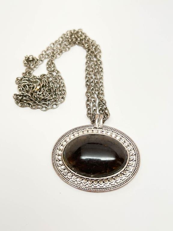 OVERSIZE STONE PENDANT NECKLACE, LARGE BLACK STONE , LONG C+C160