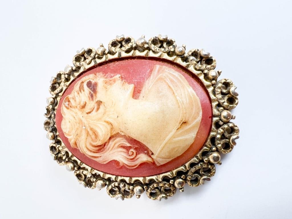 BJ CAMEO AND LANCER BOW BROOCHES, 2 IN 1 LOT