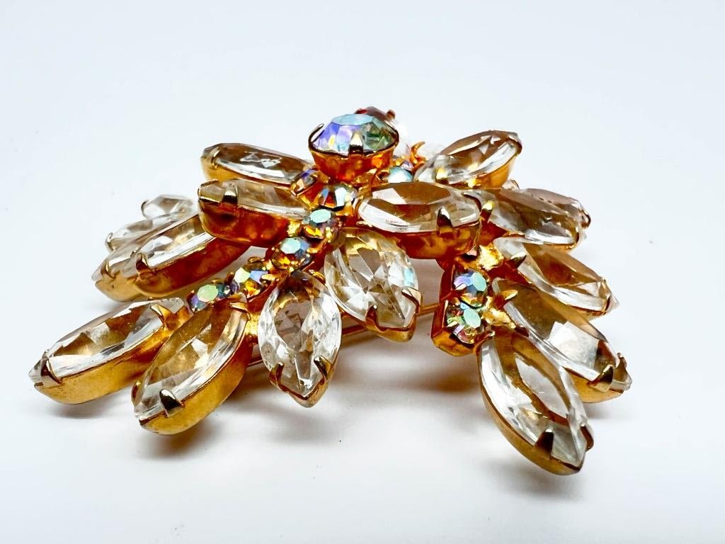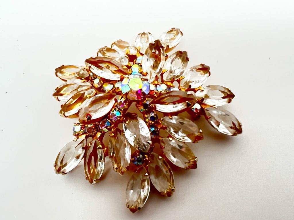 HUGE SEE THRU STONES BROOCH, SIMPLY STUNNING APPEARANCE !!! SHINE AND SPARKLES EVERYWHERE, TRUE EYE CATCHING PIECE ! EXCITING !