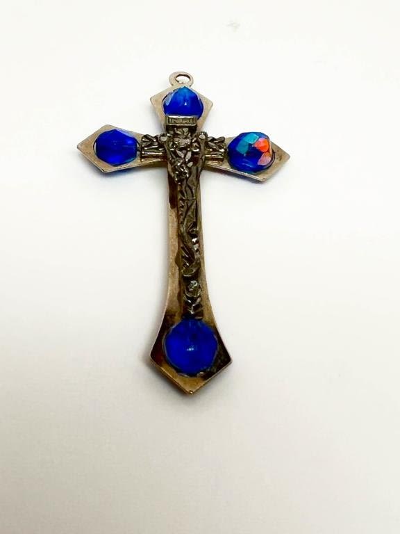 ITALY CROSS WITH STONES , SIGNED ITALY