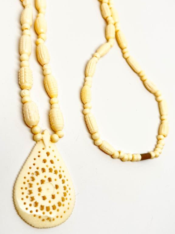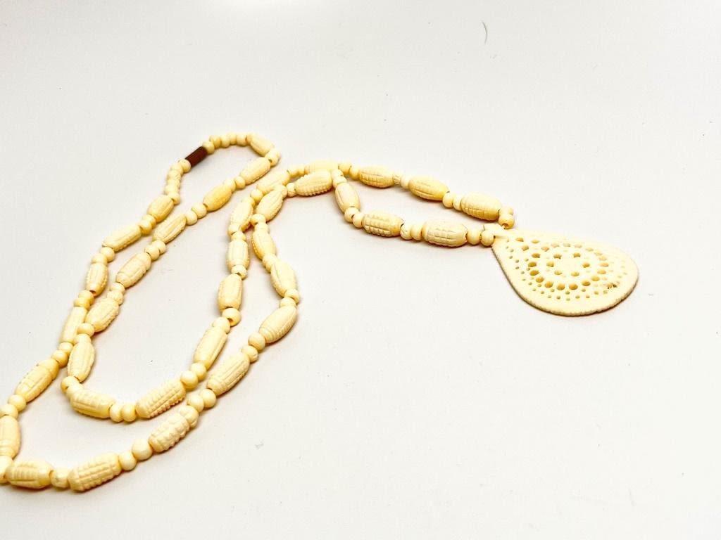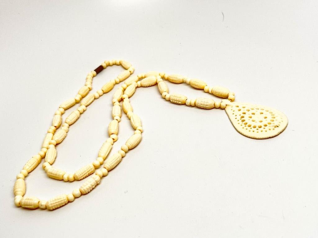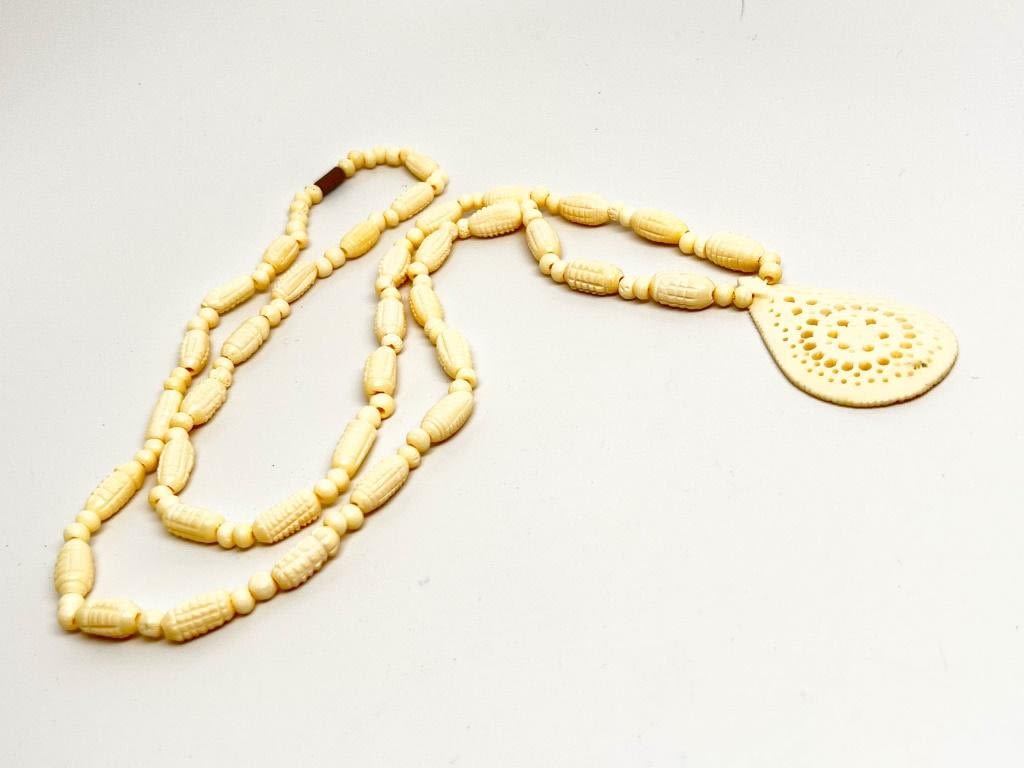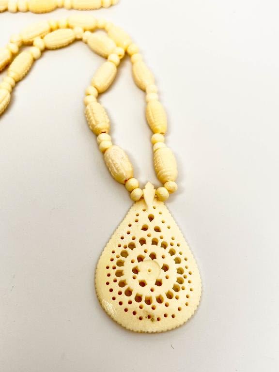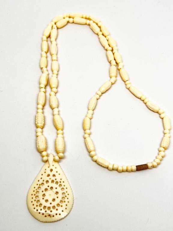 VINTAGE IVORY? LONG NECKLACE AND PENDANT, CARVED AND ABUNDANT DETAILING M BEAUTIFUL !!!