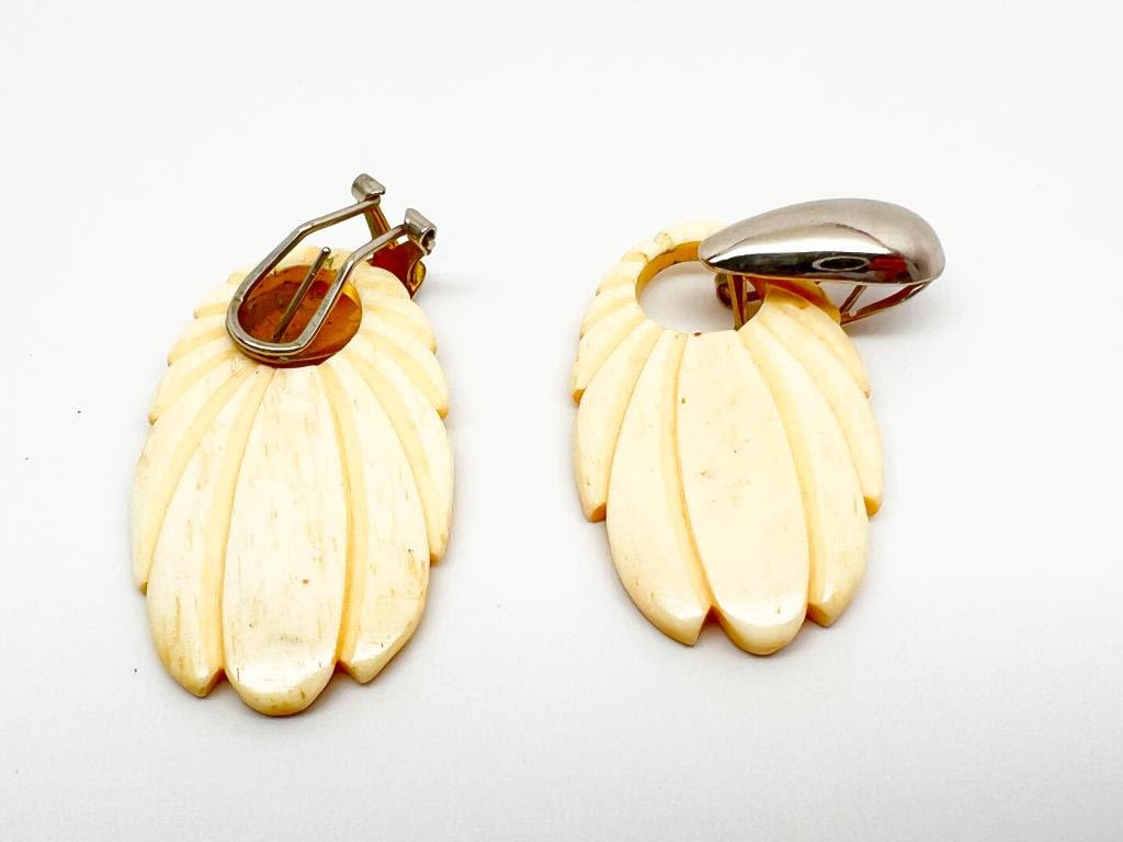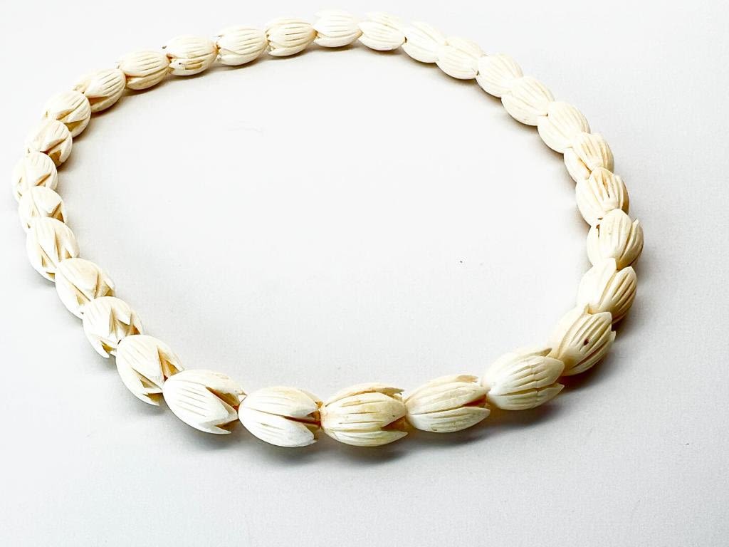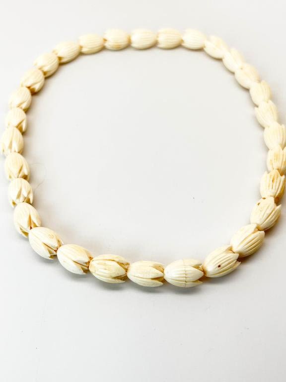 VINTAGE IVORY? NECKLACE + EARRINGS, LIGHT CREAMY IVORY IN COLOT , LOOK CARVE
