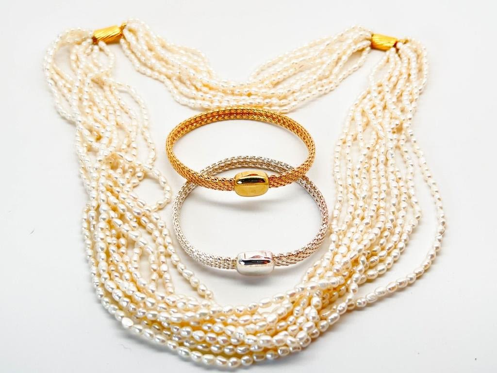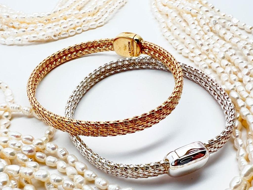 2 MONET AND FW PEARLS, 2 SIGNED MONET MAGNETIC BRACELETS COMPLIMENT FW PEARLS