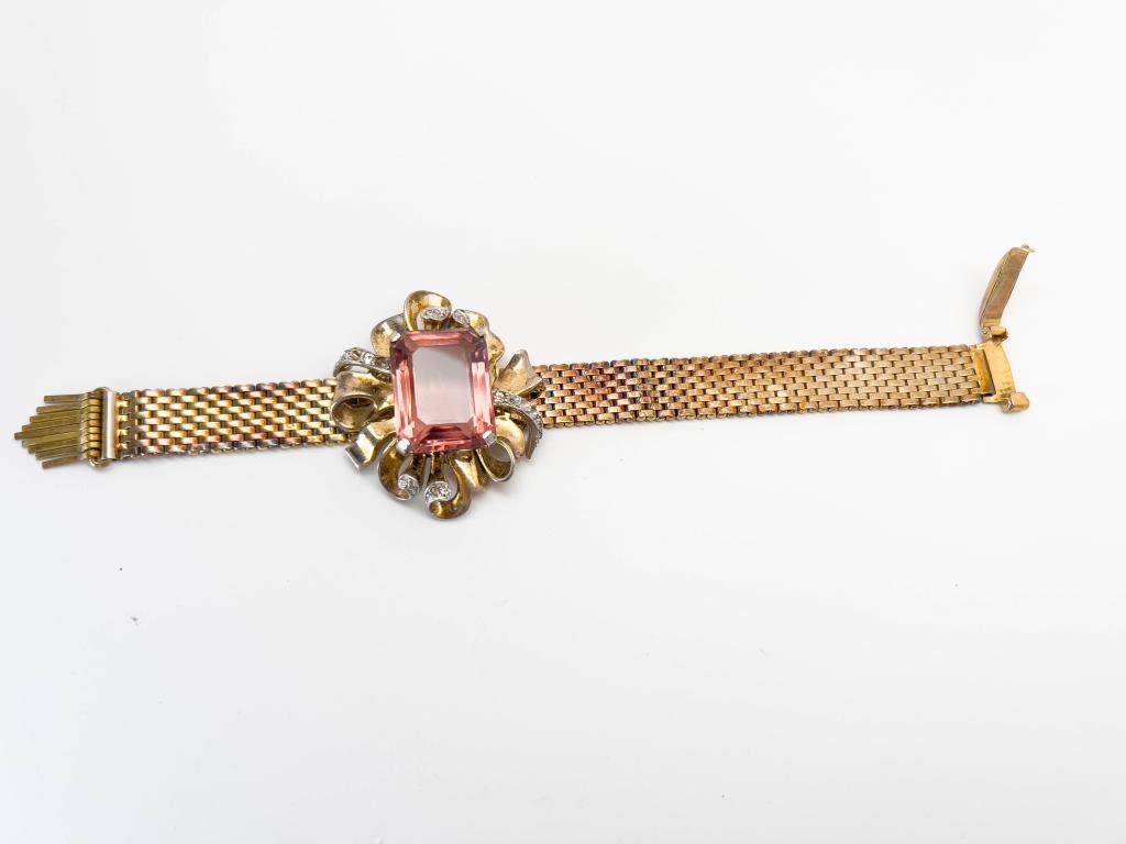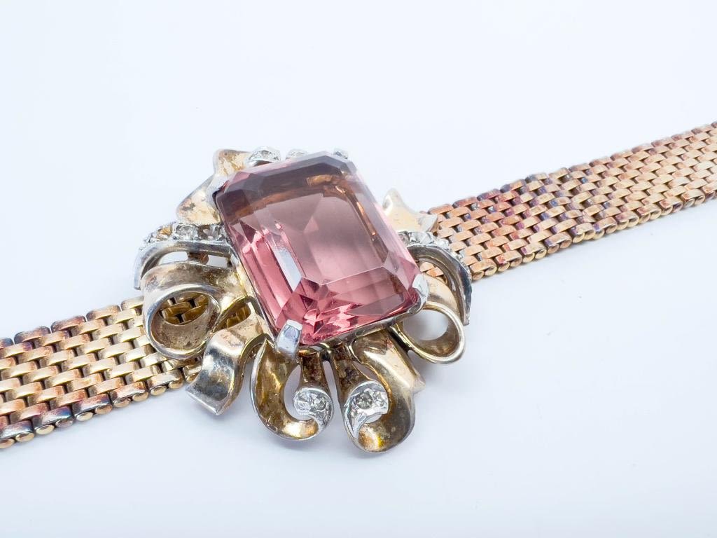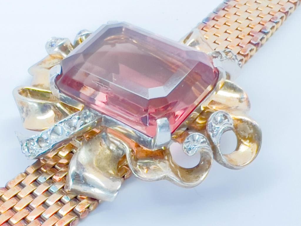 KREISLER RARE 40’S BRACELET, MESH BRICKWORK, FRINGED END. HUGE CENTER STONE !!! MISSING A COUPLE TINY STONES