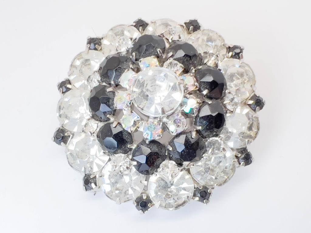 FACET B & W STONE BROOCH VERY HEAVY QUALITY BROOCH, SPARKLES !!!!