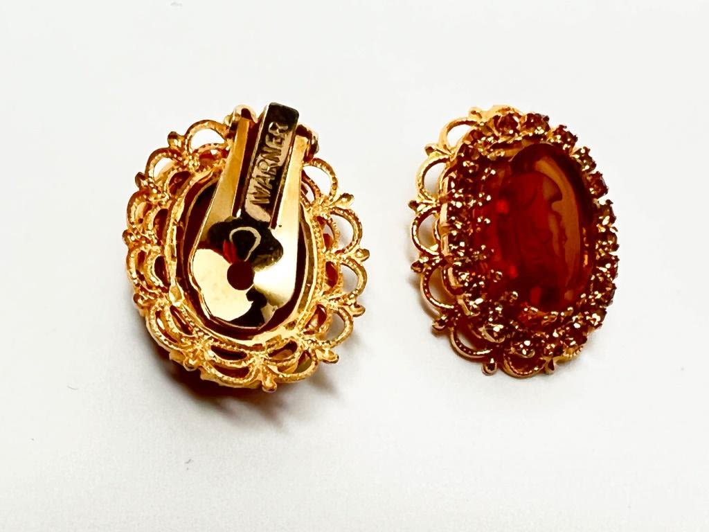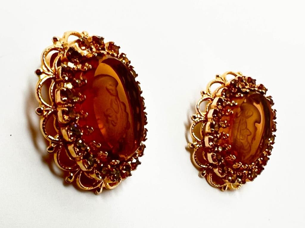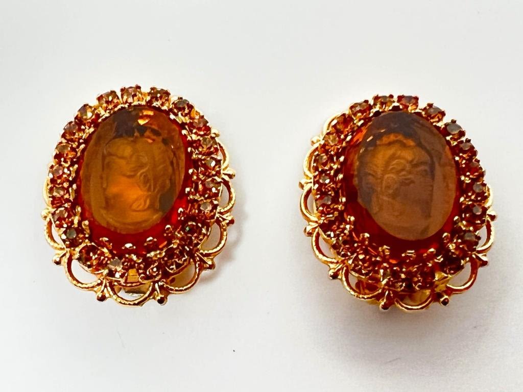 WARNER CAMEO FILIGREE PAIR , AMBER COLOR CAMEO, UNUSUAL, NEW?