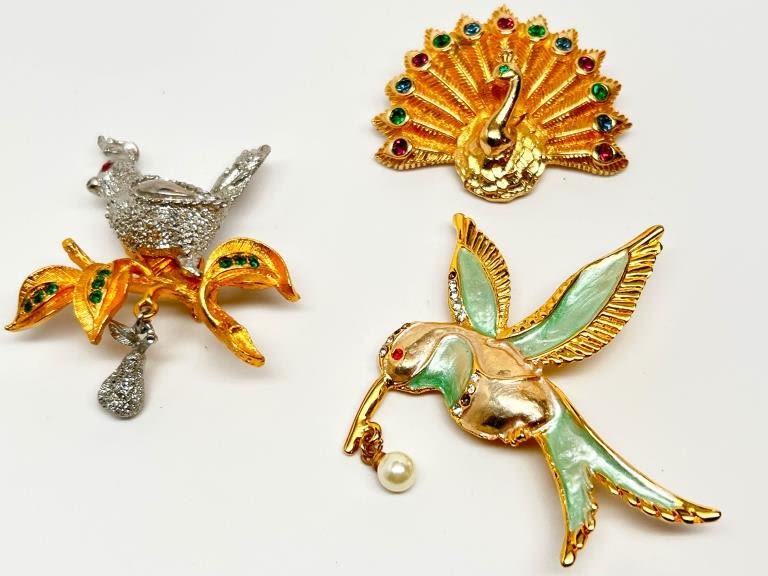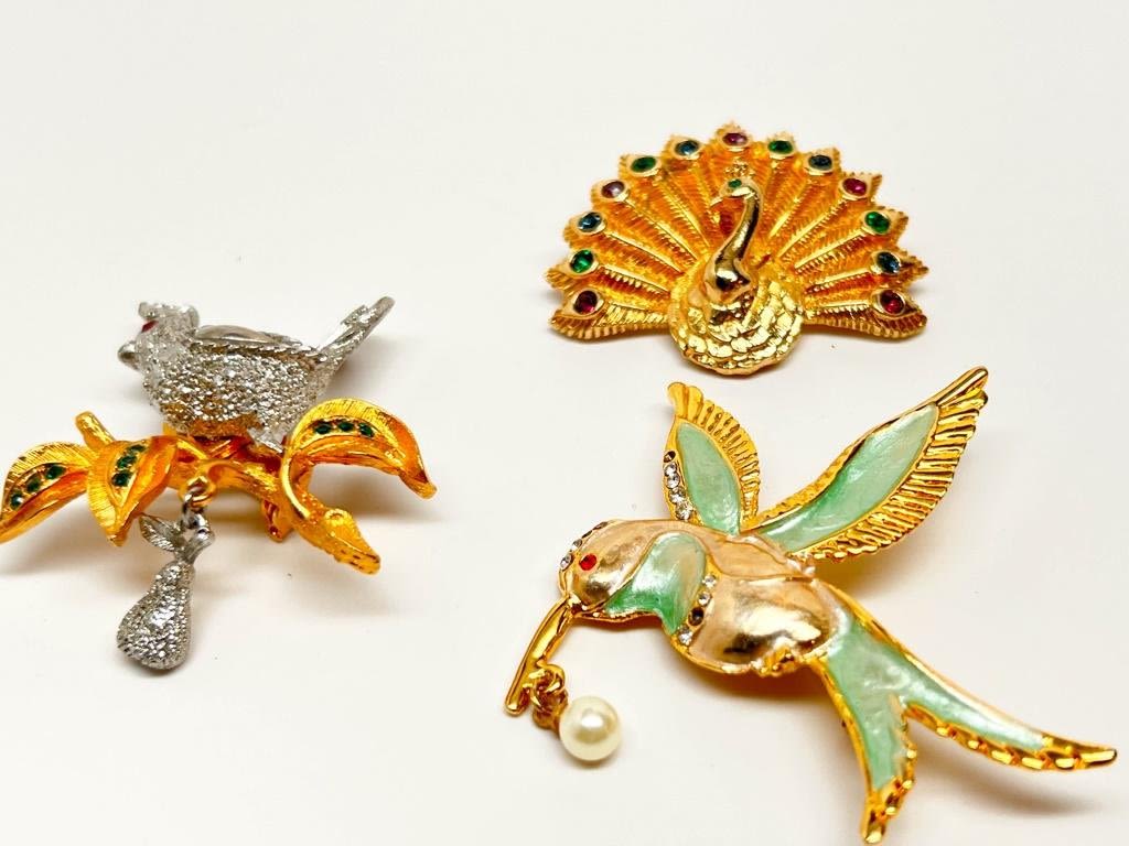 BIRDS AND BOWS BROOCHES , SIX TOTAL !!!