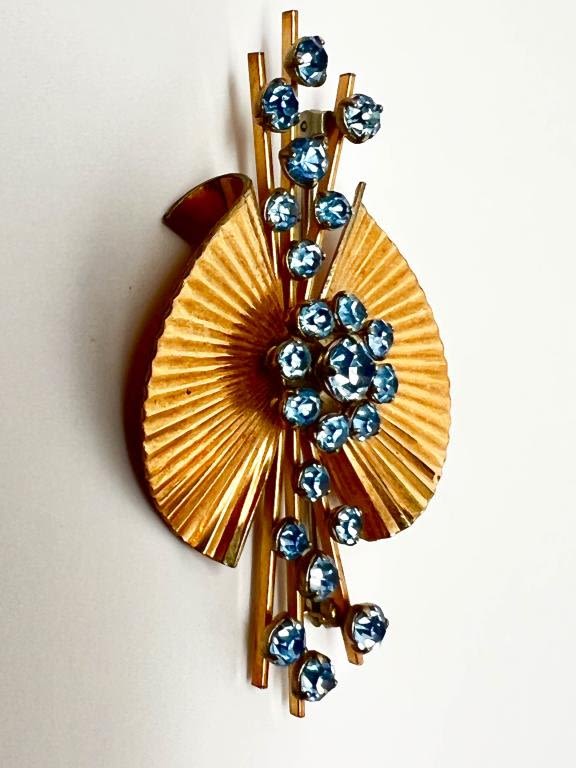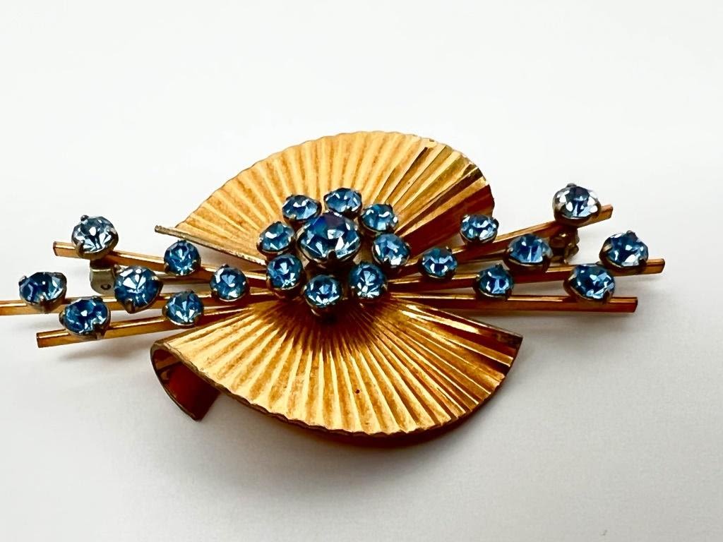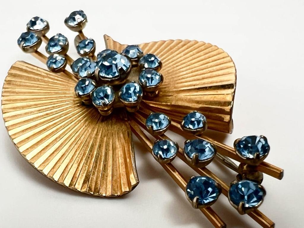 KREMENTZ FAN PIN , SKY BLUE STONES, SIGNED KREMENTZ