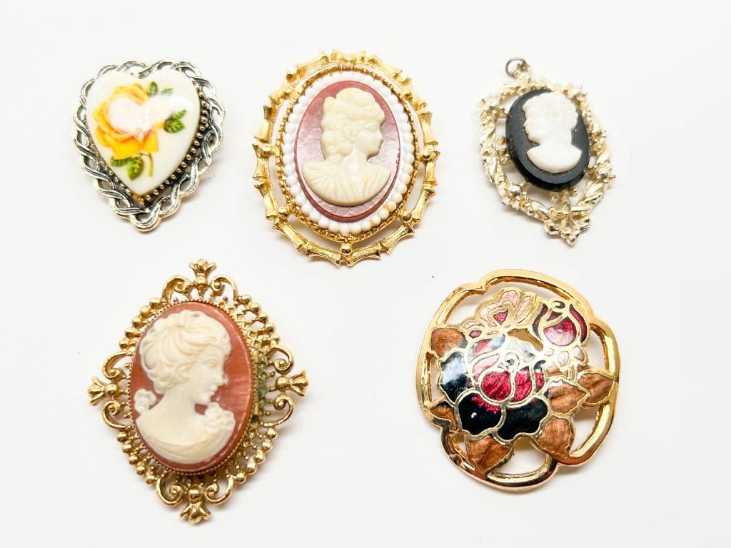 VINTAGE CAMEOS , FLORALS, LADIES , VERY NICE