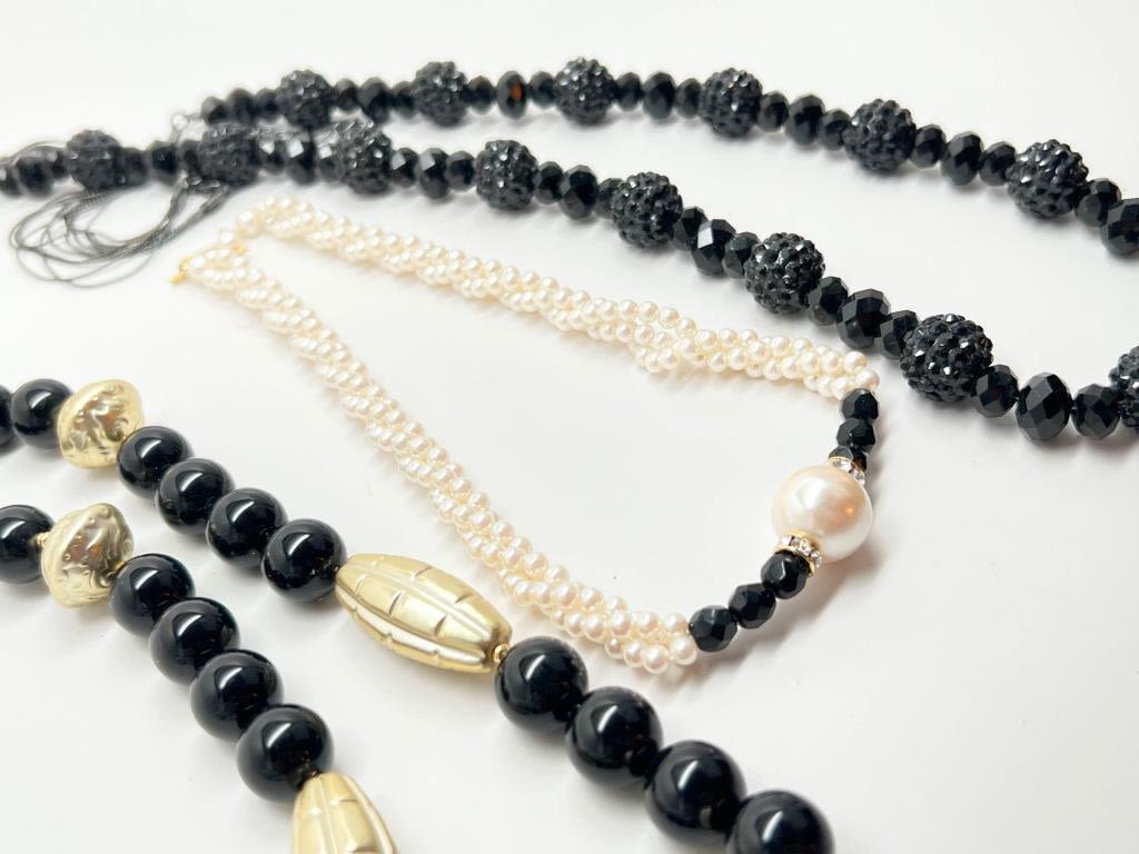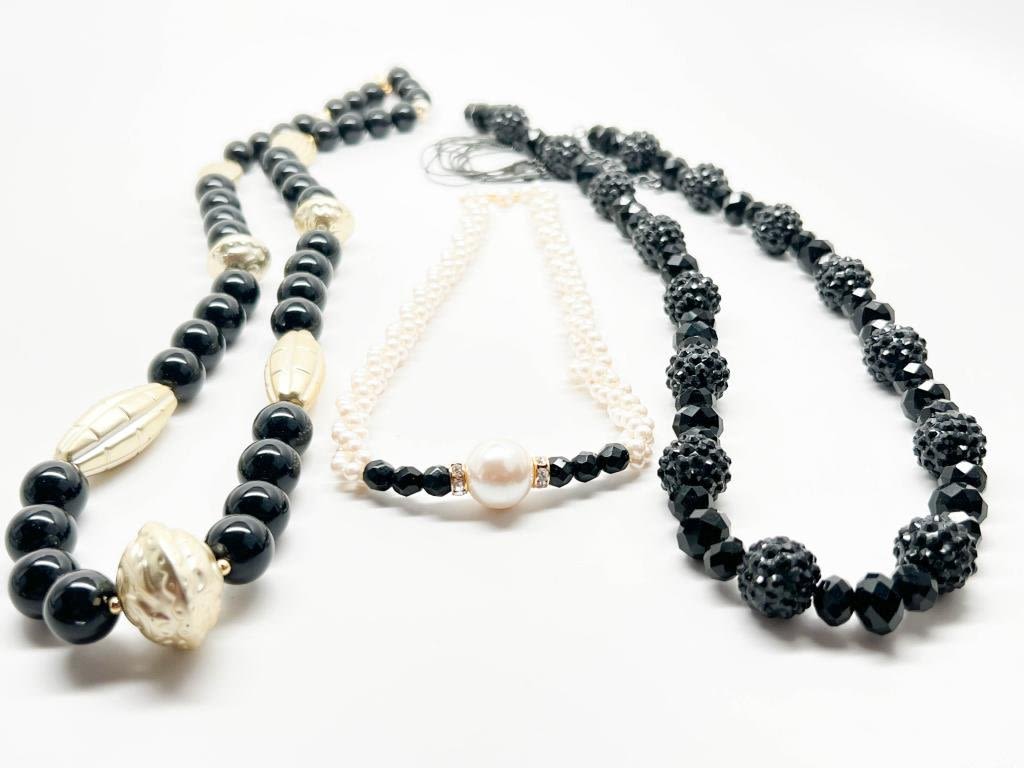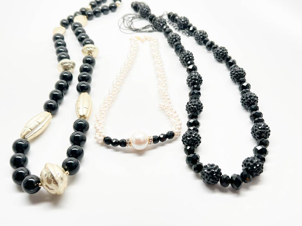 VINTAGE BLACK AND CREAMS NECKLACES TRIO, NCIE TEXTURES, UNUSUAL, LOOK GREAT LAYERED !!!