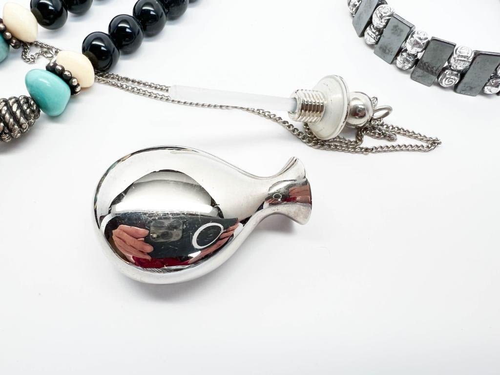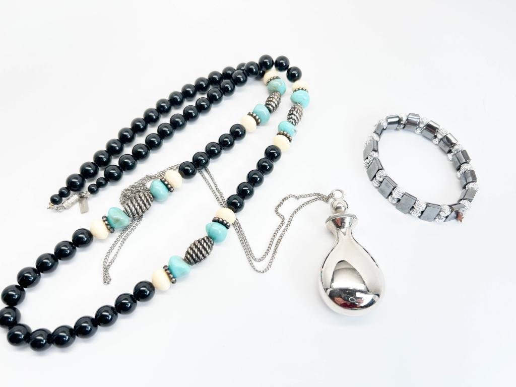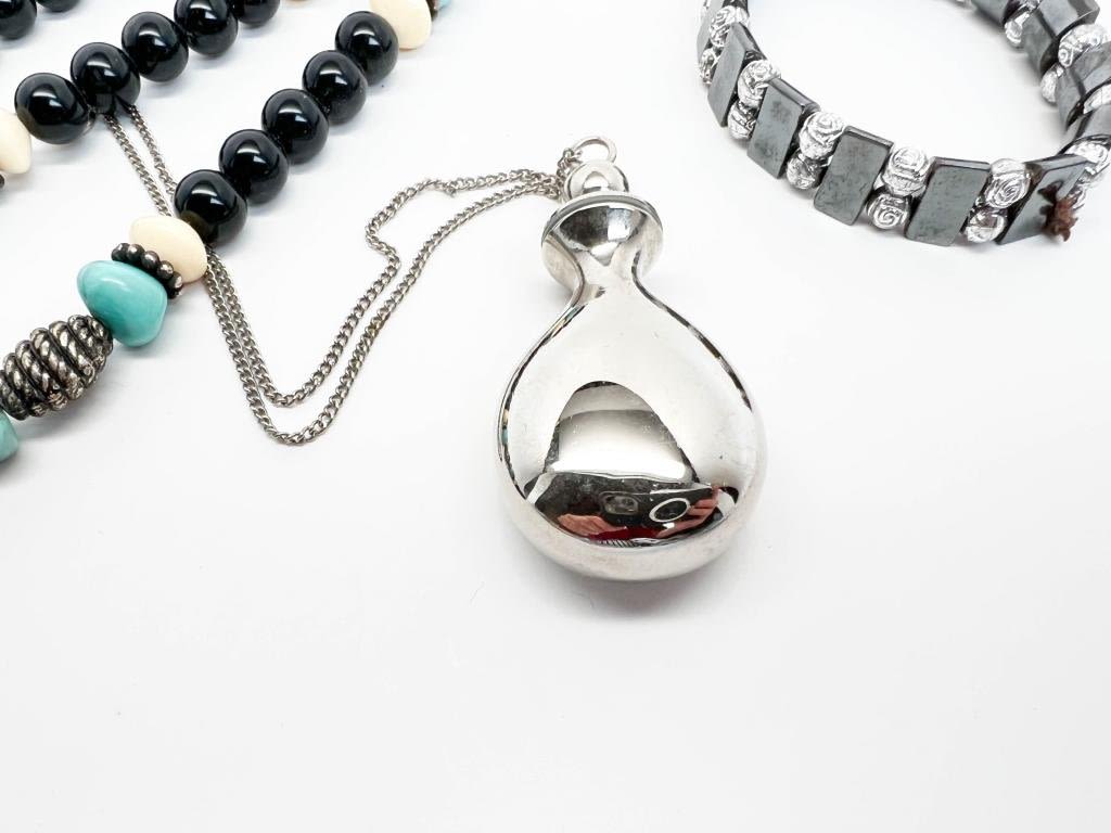 VINTAGE PERFUME BOTTLE NECKLACE AND MORE , BOTTLE CAP UNSCREWS AND SMALL APPLICATOR INSIDE , UNIQUE ITEM ! NICE NECKLACE