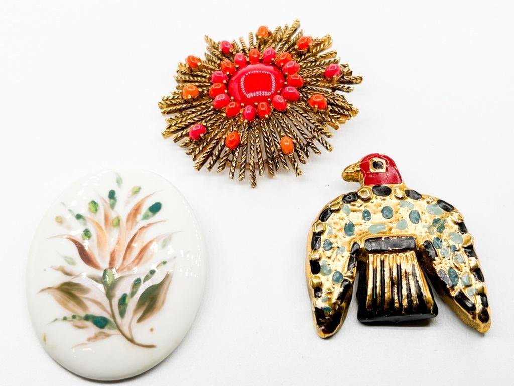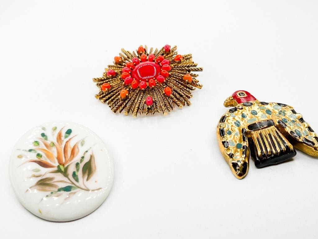 BROOCH TRIO ONE FLORAL, ONE BIRD, ONE STARBURST STYLE