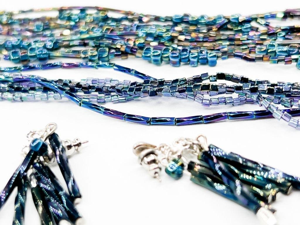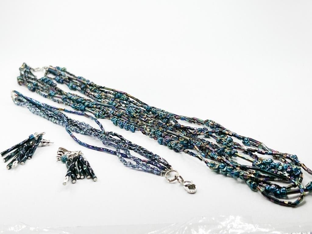 AMAZING IRRIDESCENT BEAD SET , NECKLACE AND EARRINGS, SHINE ON