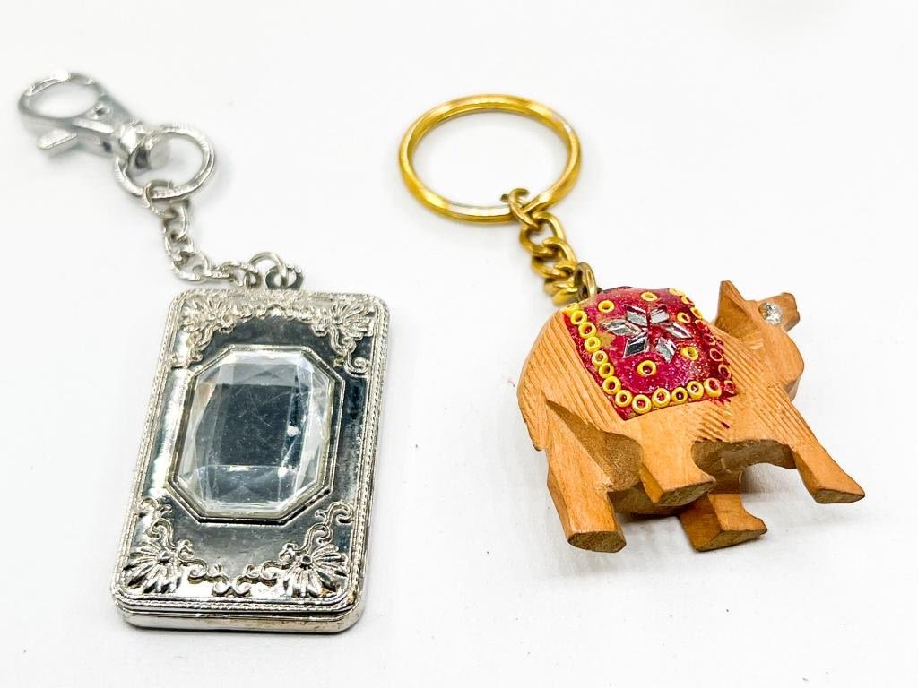 CARVED STYLE ELEPHANT AND JEWEL STONE KEYCHAINS