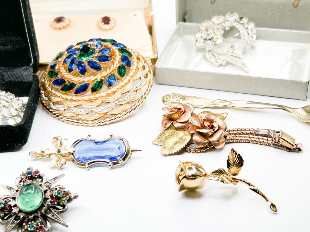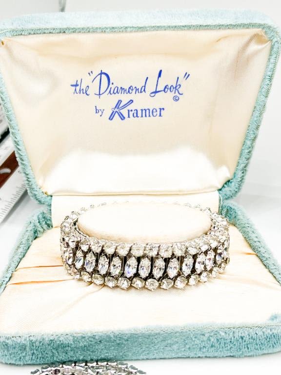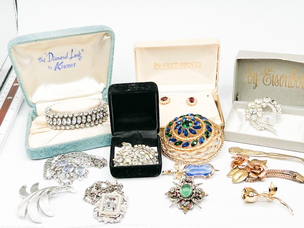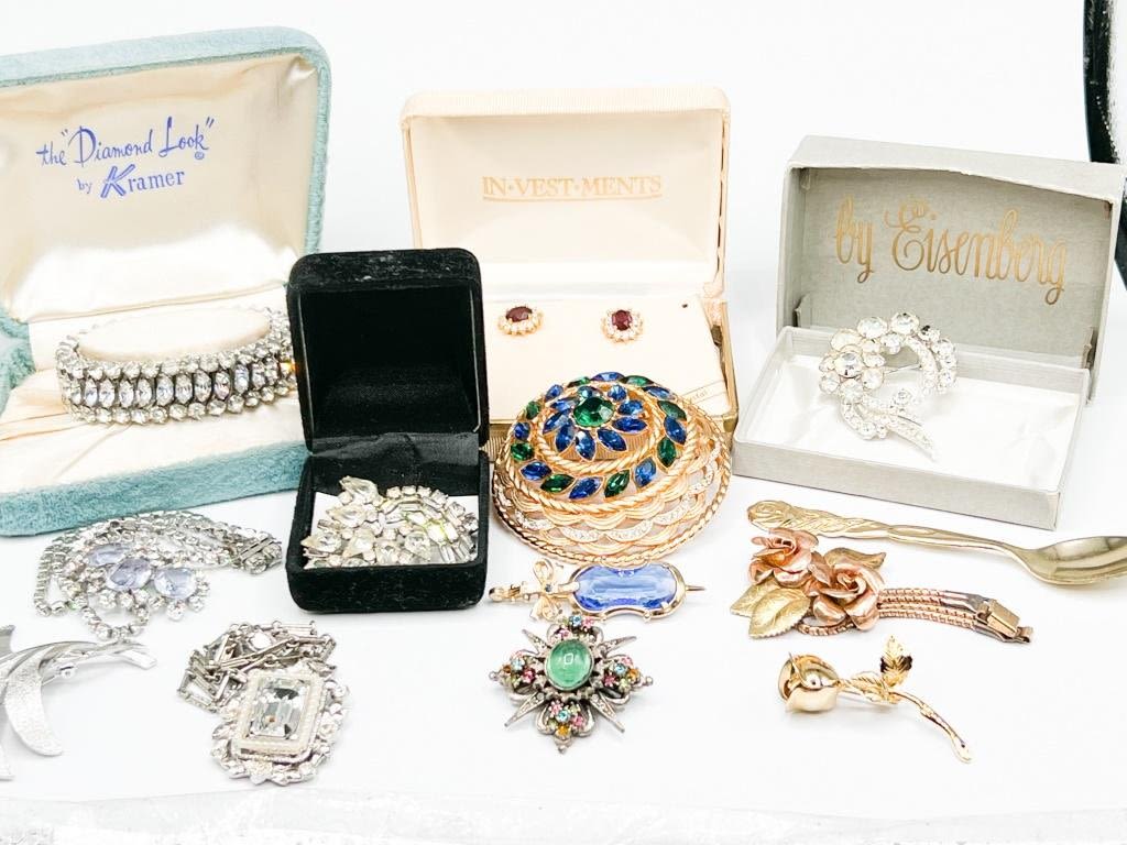 STUNNING GROUPING OF VINTAGE + SIGNED, EISENBERG, KRAMER OF NEW YORK, GENUINE CRYSTAL, DIANA, COROS , PASTELLI, JOLLE
