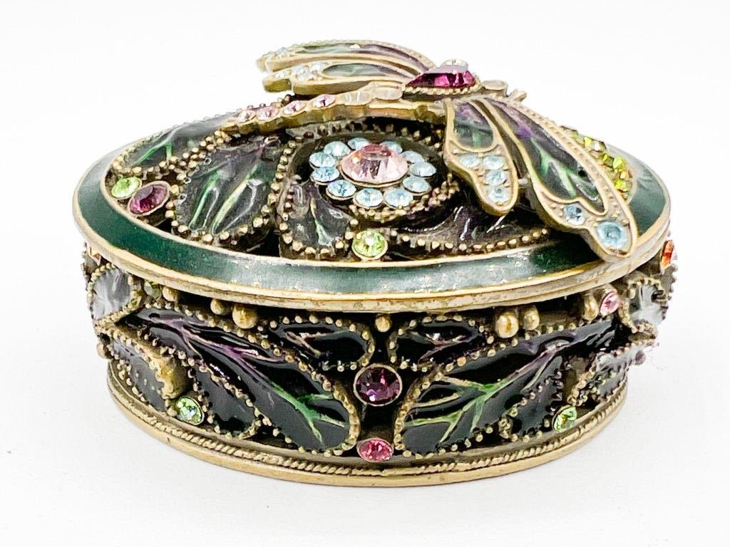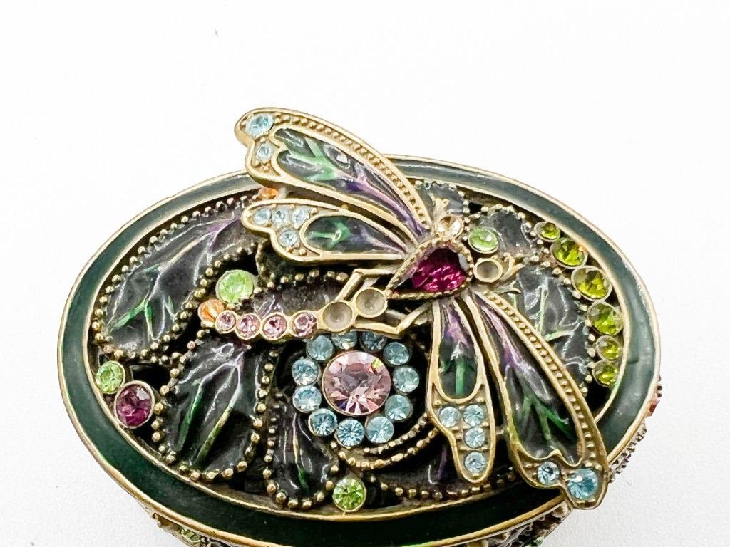 JEWELED BUTTERFLY TRINKET CASE, SMALL HEAVY TRINKET CASE, MIGHT BE STONE MISSING