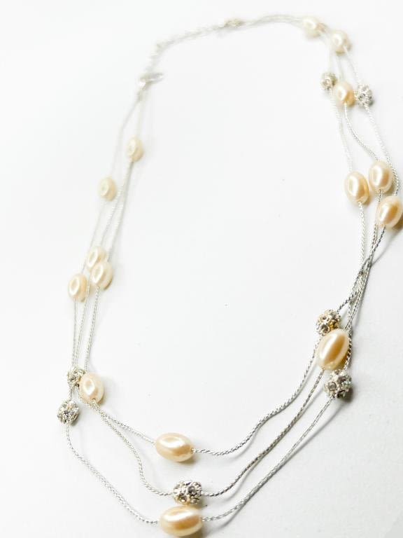 MONET DELICATE NECKLACE, DELICATE FAUX PEARL AND STONE NECKLACE
