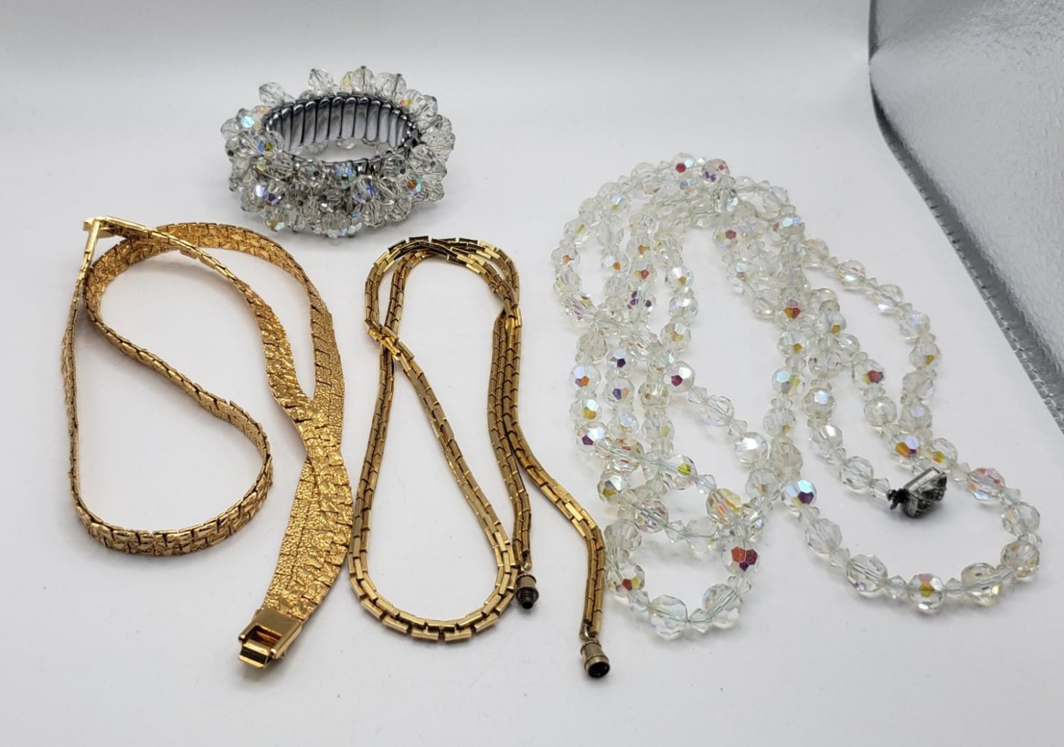 ASSORTMENT CRYSTAL AND GOLD TONE NECKLACES